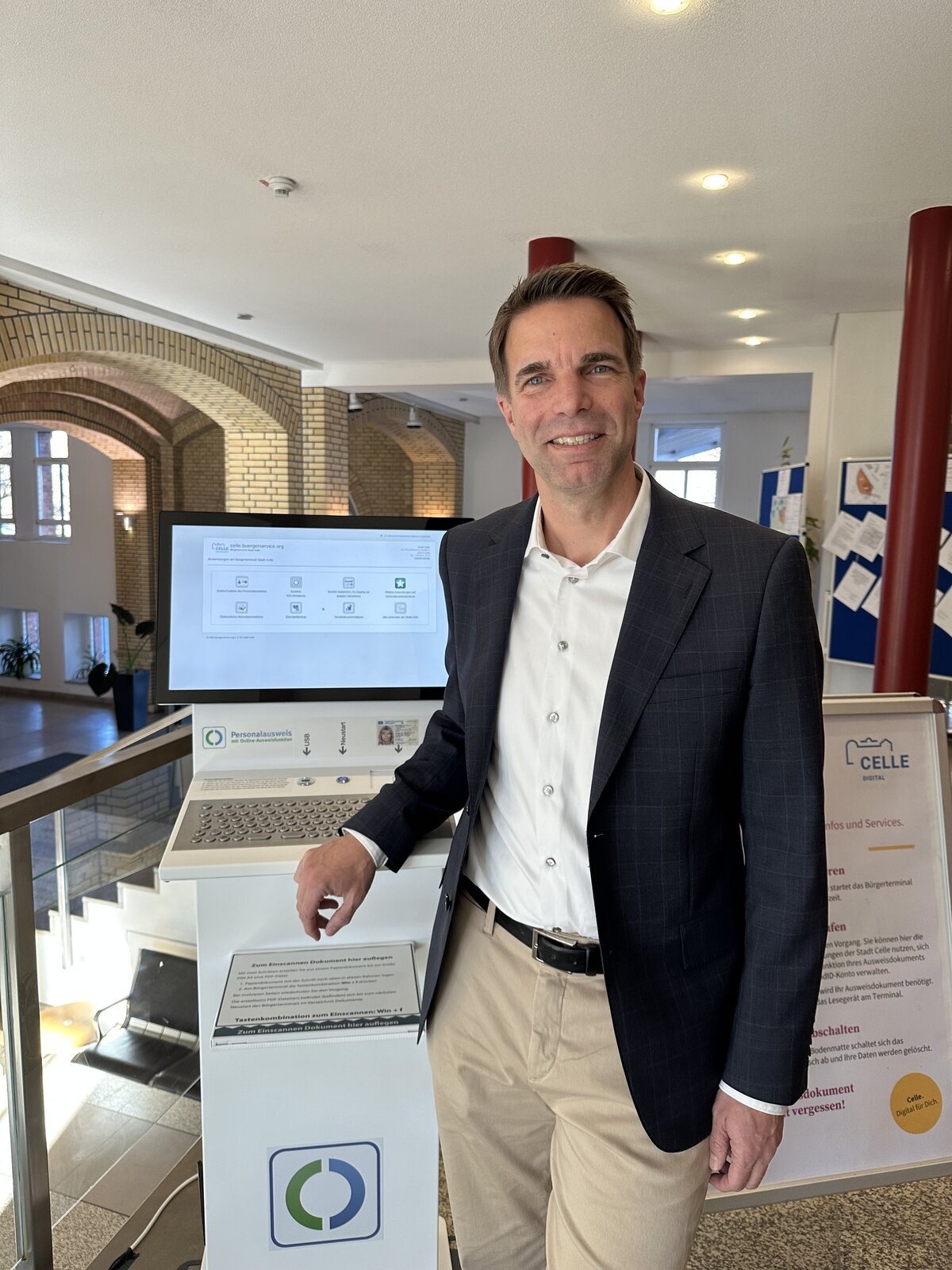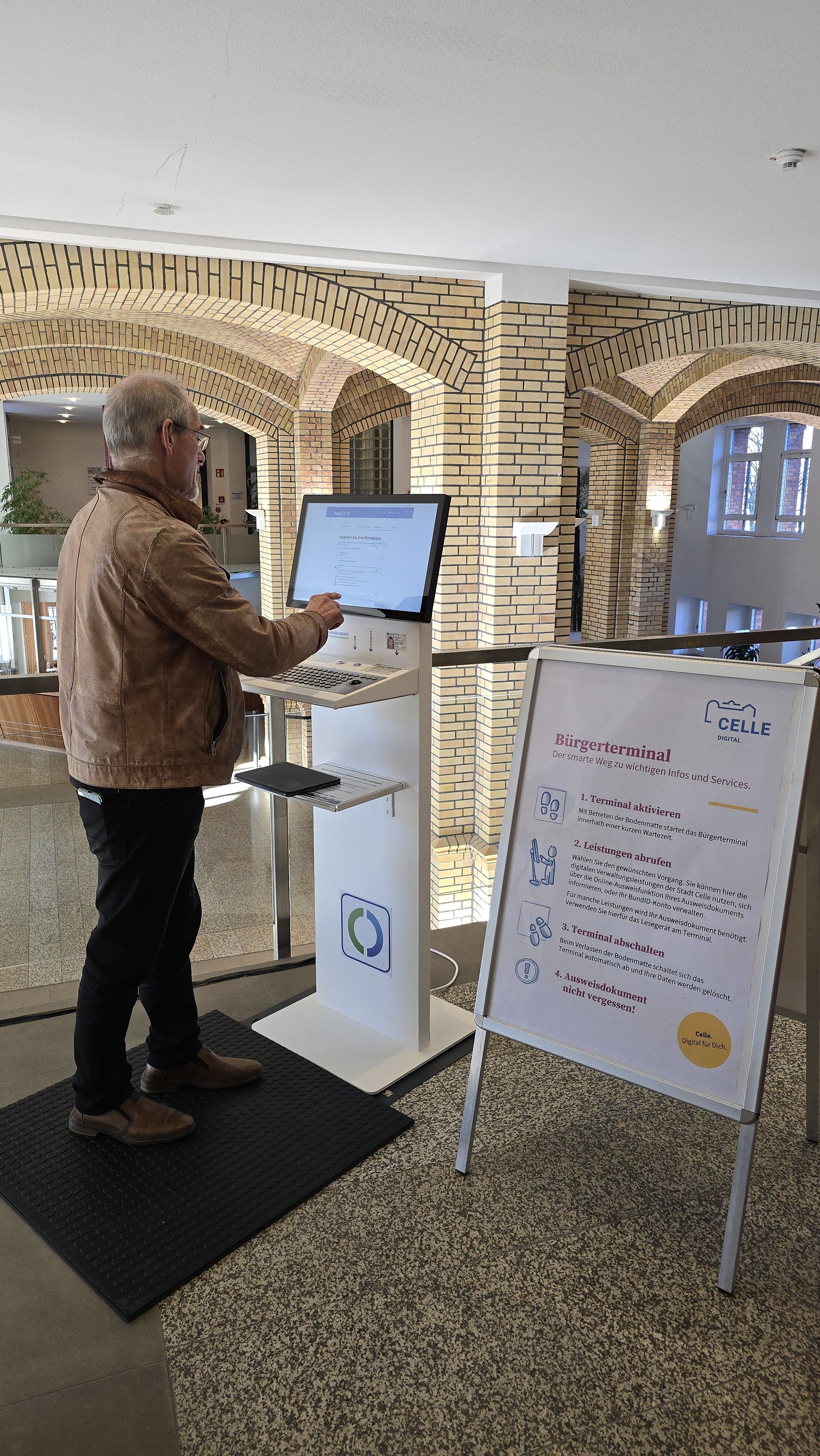 Pressemitteilung der Stadt Cellle am 6. November 2025: “Digitalisierung ist ein Prozess, der stets mehr Raum in unserem Alltag gewinnt, so auch bei uns in der Stadtverwaltung”, sagt Oberbürgermeister Dr. Jörg Nigge. Ziel ist es, den Antragstellern einen durchgängig digitalen Ablauf in allen Lebenslagen zu bieten. Darunter versteht die Stadt Celle Online-Leistungen, die einschließlich aller Nachweise vollständig digital abgewickelt werden können. “Damit möglichst viele Menschen Zugang zu unseren Onlinediensten und mehr haben, steht ihnen ab sofort ein Bürgerterminal zur Verfügung”, so Nigge. Zu finden ist im Erdgeschoss auf der Galerie vor dem Entrée zum Bürgerservice (Zugang via Foyer).