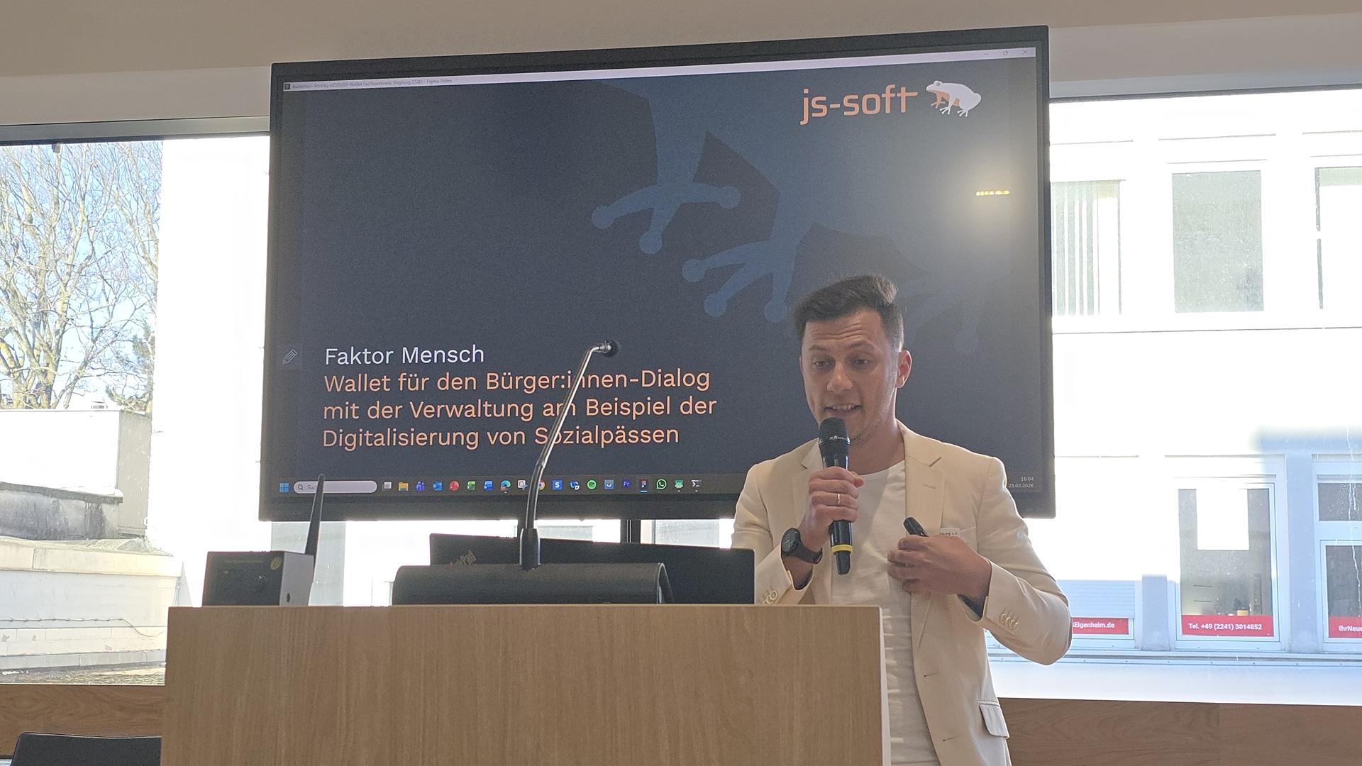 Videoaufzeichnung zum Vortrag der Kreisstadt Siegburg - Neumitglied js-soft AG gibt einen Einblick, wie die eID mit einer Wallet für den Bürger/-innendialog mit der Verwaltung am Beispiel der Digitalisierung von Sozialpässen zum Einsatz gebracht wird.