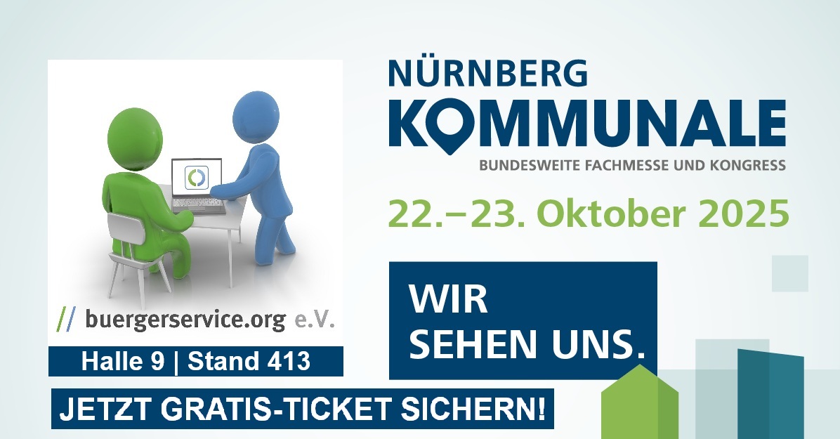 Registrieren Sie sich online unter www.kommunale.de/gutschein mit unserem Gutscheincode KOM25buergerservice für Ihr kostenfreies E-Ticket (Dauerkarte). Damit haben Sie ohne Wartezeiten direkten Zutritt zur Messe!