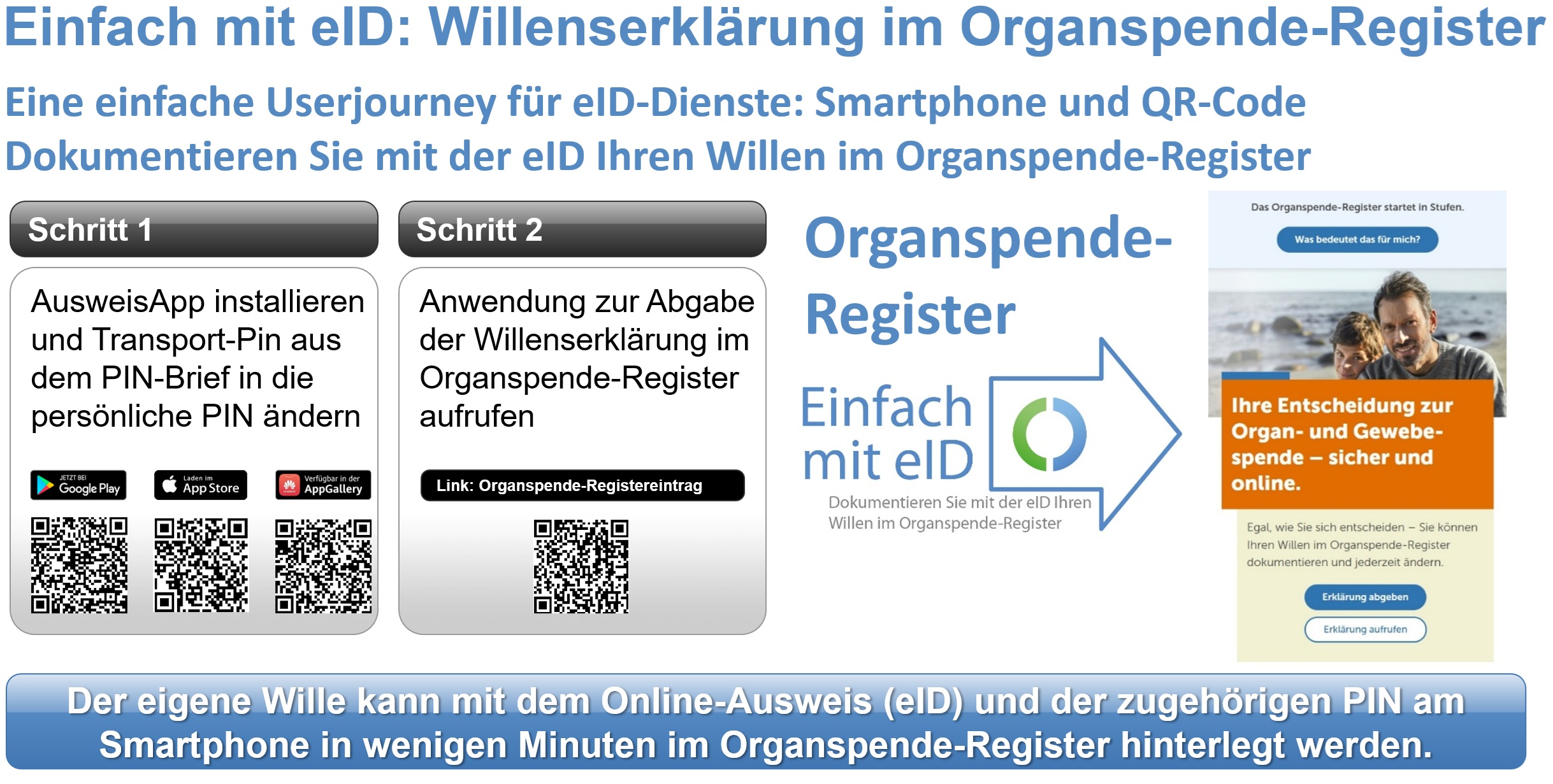 Klicken Sie auf die nebenstehende Grafik und tragen Sie über die QR-Codes in wenigen Minuten Ihre Entscheidung für oder gegen eine Organ- und Gewebespende online ein. Ein Organspendeausweis ist nach der Eintragung nicht mehr erforderlich.